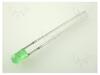Otros nombres: LED, Baja Potencia, Verde, Agujero Pasante, T-1 (3mm), 20 mA, 2.2 V, 568 nm.
